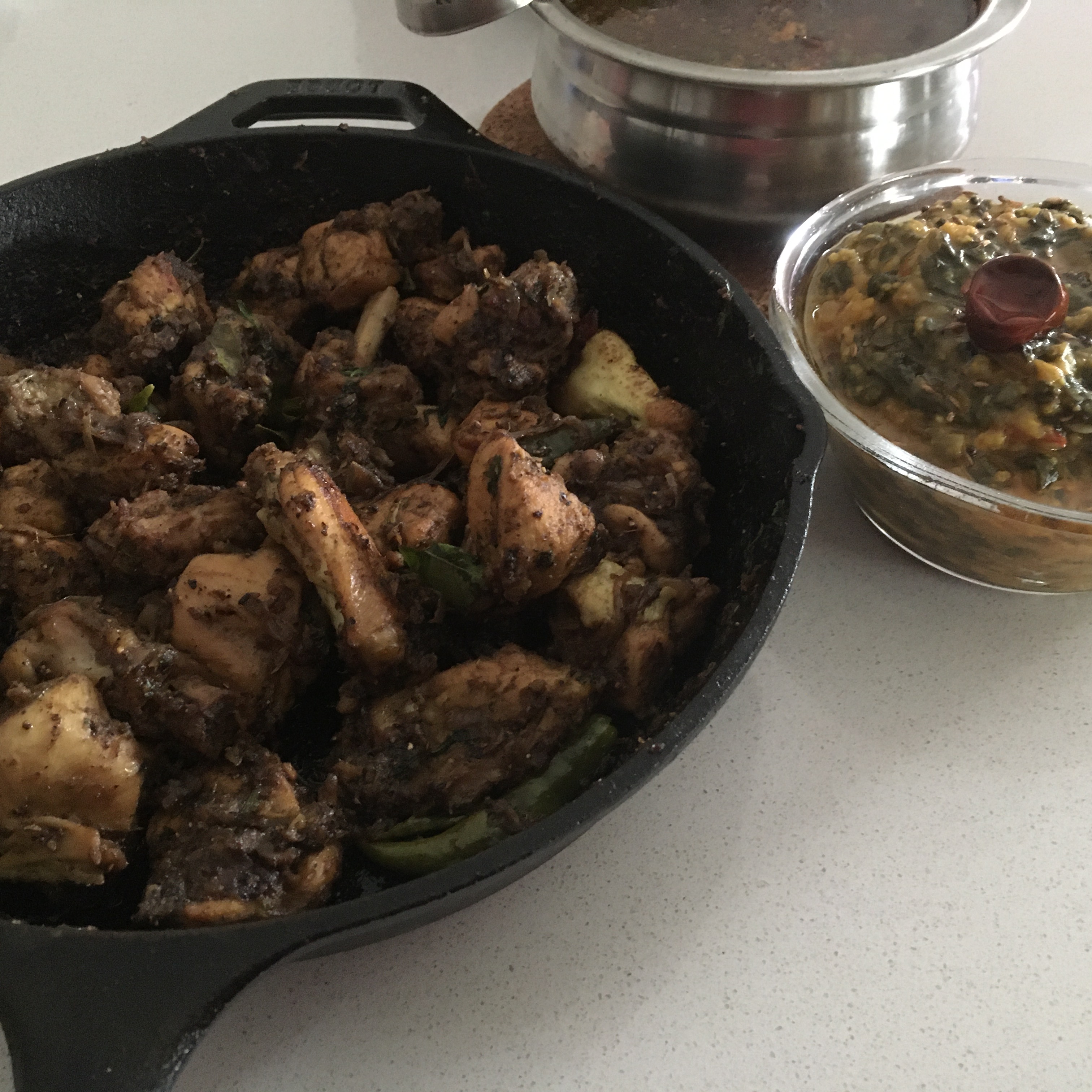 Talking of time spent at homes, a lot of us are donning that Chef hat, juggling work, household chores. Well, a lot of us have been quite adventurous trying newer recipes esp with the restaurants being closed . Many of us have learnt to cook with what we have in our hands during the lockdown season spanning months. That said, this recipe is a quick one, less ingredients and easy too. Some ingredients pair and compliment each other so well like the Pepper and lemon used in this recipe and that garnish of coriander elevates it . Remember Lemon, Coriander, Pepper and Chicken = Yummo! The only time you’ll be hovering the stove is when you’re sauteing the onions. The rest is easy. This goes well with Dal rice, Rasam and Lemon Rice